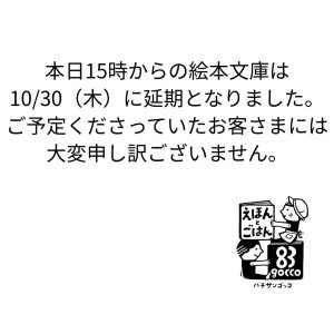 16日、第三木曜に予定していた「とっとこ文庫」ですが、 絵本担当の体調不良のため、勝手ながら30日(最終木曜)に変更させていただきます。 (コロナ・インフルは陰性でした! ご心配なく) お惣菜は平常通りやっております。どうぞよろしくお願いいたします。