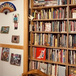 (写真は11月のお茶会「クリスマスを迎える絵本」の棚)